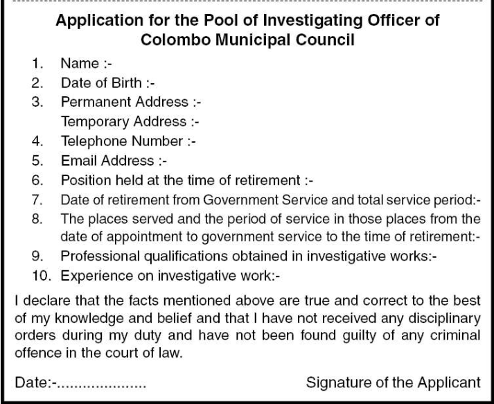 Pools of Investigation Officer - Colombo Municipal Council
