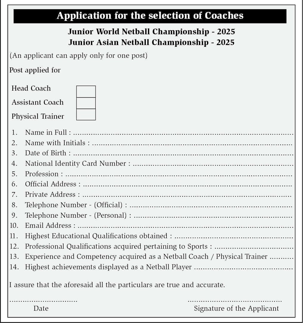 Head Coach, Assistant Coach, Physical Trainer - Department of Sports Development