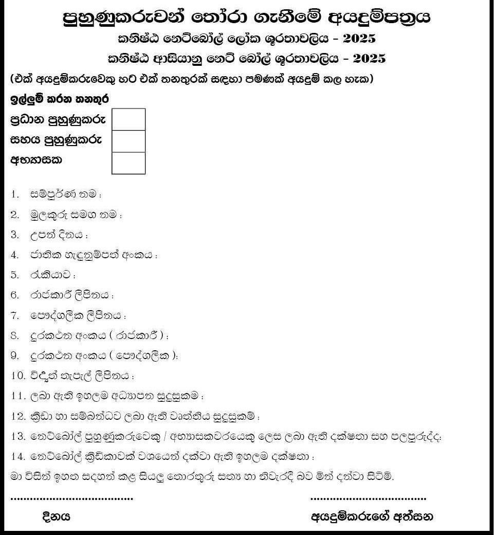 Head Coach, Assistant Coach, Physical Trainer - Department of Sports Development